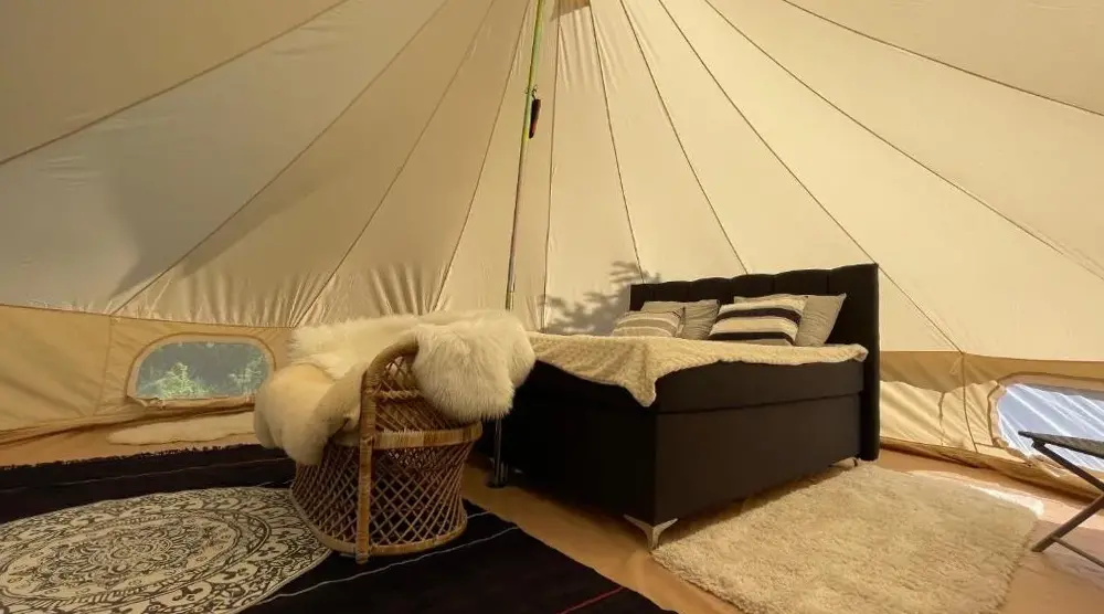 Палатка была чистой и хорошо расставленной. Кровать мягкая, спать приятно! Мы хорошо спали ночью. Владелец был дружелюбным и услужливым. Рядом была небольшая электрическая сауна и сауна за дополнительную плату, которые тоже были аккуратными.